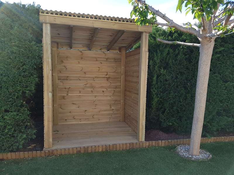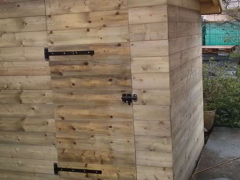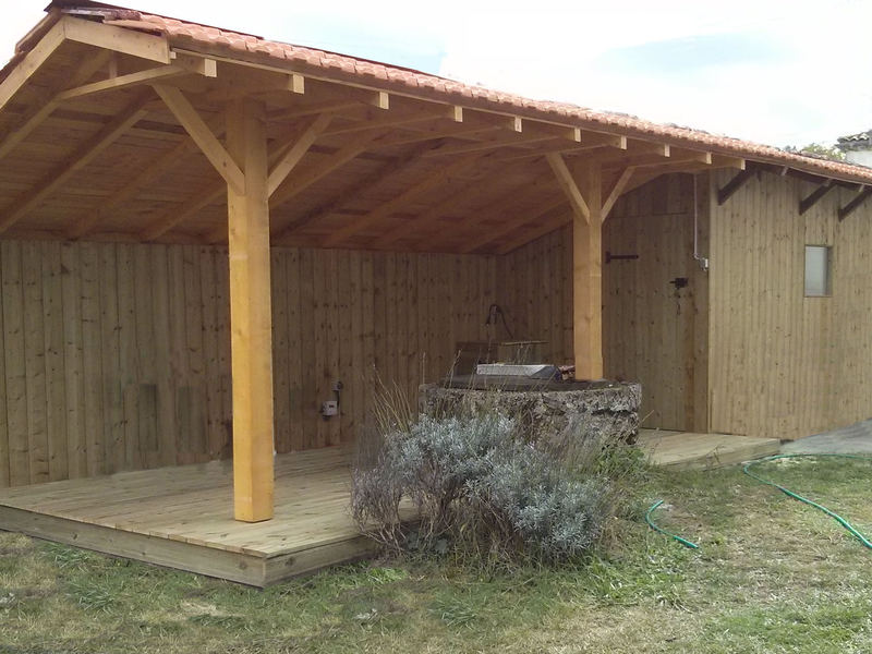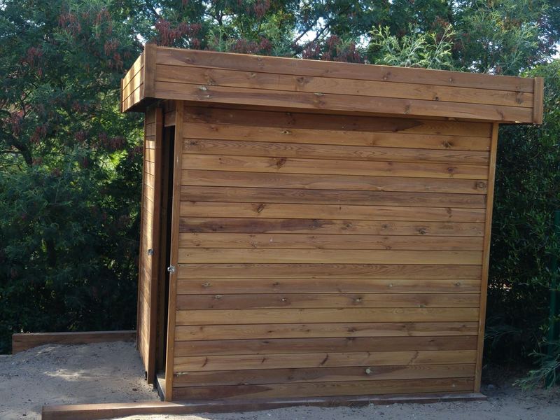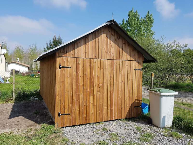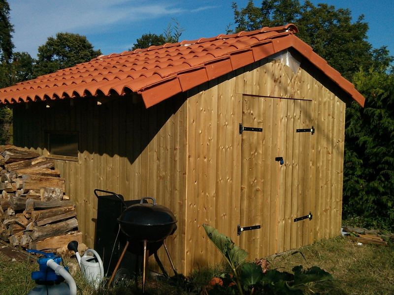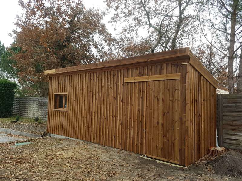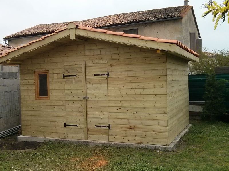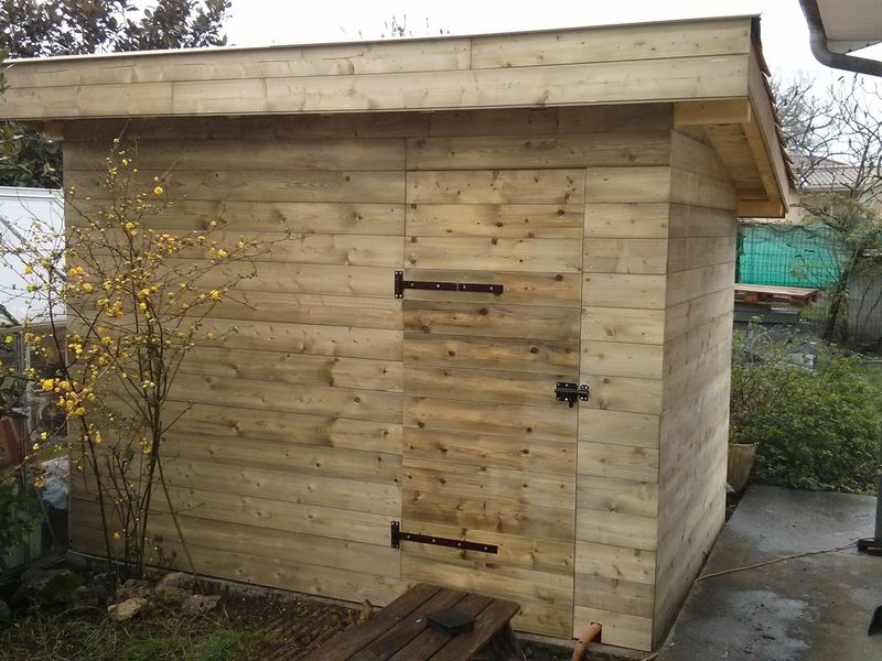 Ossature bois avec bardage apliqué par l'éxtérieur, toiture un ou deux pans ou encore toiture plate, intérieur isolé, fenêtre, simple ou double porte.