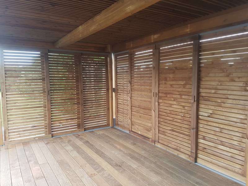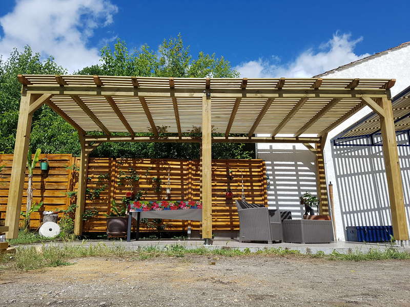 Le modéle phare tout en bois avec couverture "liteau" au design épuré. Cette pergola vous offre l'ombre necessaire en été et laisse passer suffisamment de lumiére pour un confort naturel.